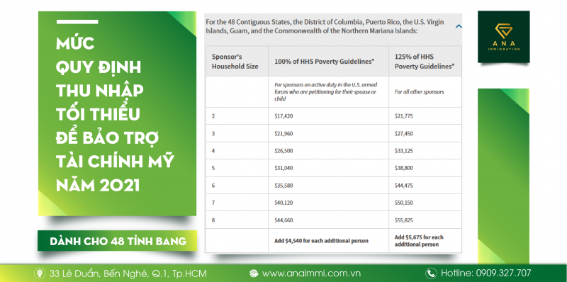 CẬP NHẬT MỨC QUY ĐỊNH THU NHẬP TỐI THIỂU ĐỂ BẢO TRỢ TÀI CHÍNH MỸ NĂM 2021