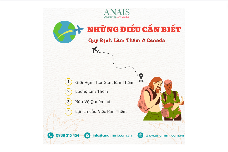 Nếu bạn muốn tìm hiểu thêm về các quy định làm thêm ở Canada hoặc có bất kỳ câu hỏi nào khác về công việc và cuộc sống ở đất nước này, vui lòng đừng kiềm hệ thống với chúng tôi tại trang web của ANAIS!